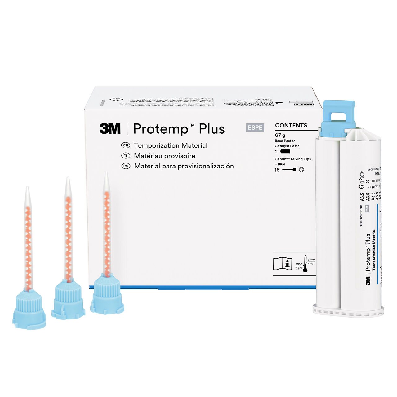 Featuring a blend of our proprietary nanofillers and polymers, 3M™ Protemp™ Plus Temporization Material is strong and offers outstanding esthetics. Offering versatile applications, this temporization material is an excellent choice for fabricating temporary crowns, bridges, inlays, onlays, veneers, and long-lasting temporary restorations.